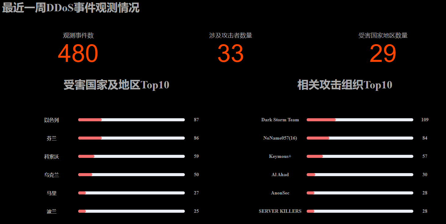 提供DDoS事件统计信息(Top10 攻击国家/地区,Top10攻击组织)适合一键截图写报