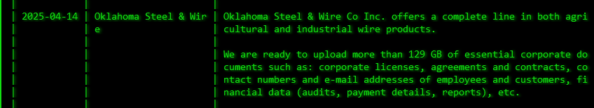 该组织声称获得了该组织129 GB的数据,包括公司许可证、协议、合同、员工和客户的联系方式以及财务数据等基本公司文件such。