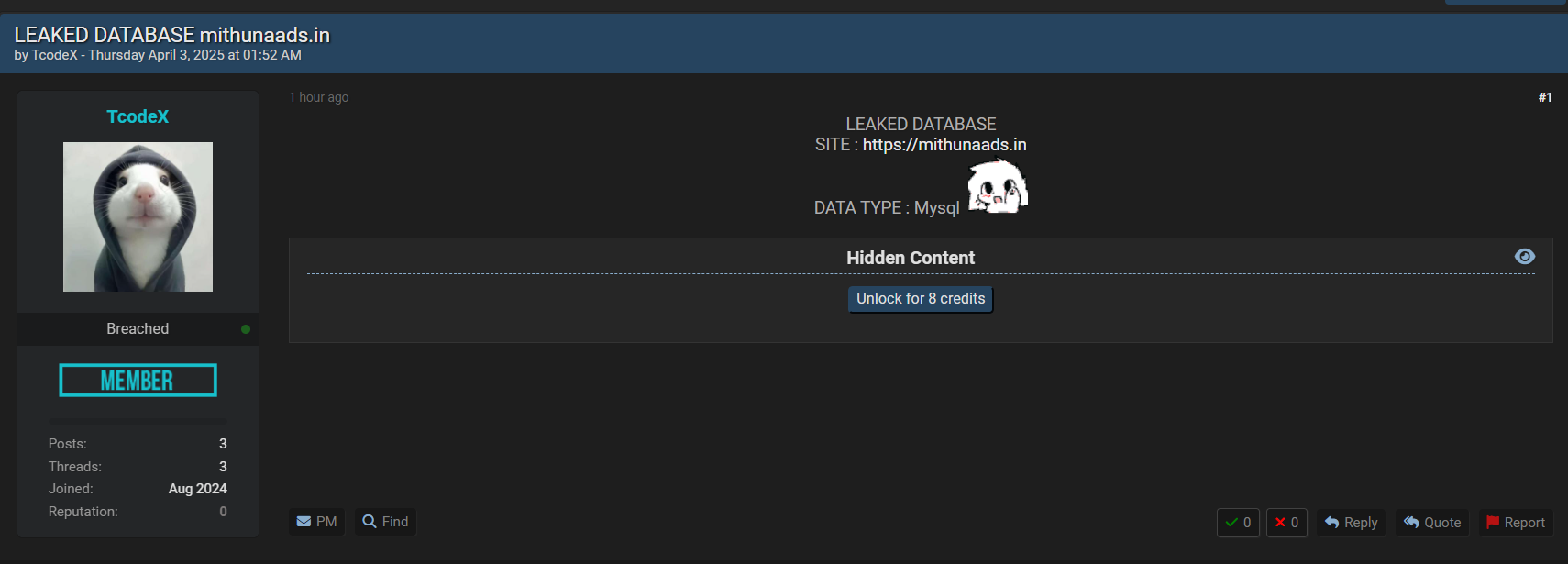 网络威胁行为者声称泄露了Mithuna Ads的数据库。