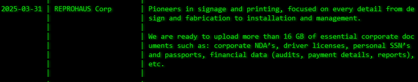 该集团声称获得了超过16 GB的组织数据的more,其中包括公司保密协议、财务记录such作为审计、支付细节、报告以及员工和客户的联系电话和电子邮件地址。